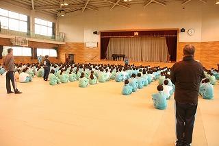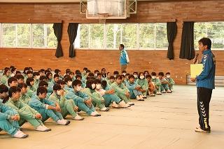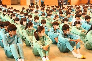 事前指導で体育館に集合した生徒のみなさん。