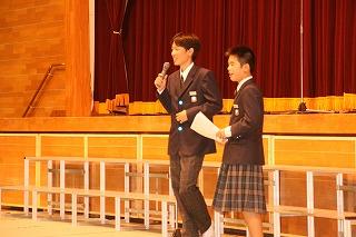 生徒会長あいさつ。※いつもながら、あいさつうまいなあ~。