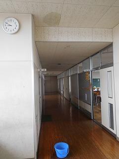 2年生廊下の「雨漏り」。降ったんですね~。