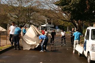 テントは乾かないまま、明日の駅伝大会の会場へ。