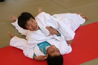 午後の授業。2年生が体育の授業で「柔道」をやってました。