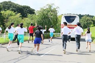 バスを追いかける子どもたち。(青木先生もいる!また会いましょう!)