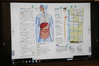 直井先生の授業。電子黒板を使ってデジタル教科書を表示中。