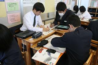 3年生の「総合」。「真岡のよさを世界に発信」がテーマ。