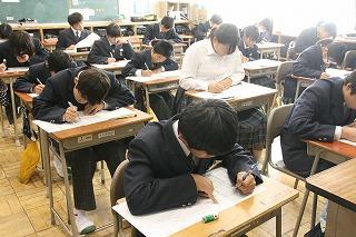 今日、明日は2学期の期末テストがあります。生徒のみなさんは、真剣に試験に取り組んでいました。