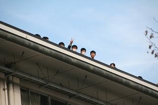 屋上で撮るクラスも。卒業の日が近づいています。