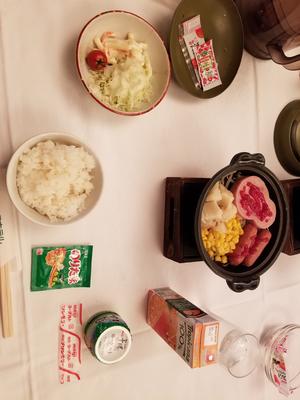 朝食のメニューです。男子は食欲旺盛で、おかわりしていました。