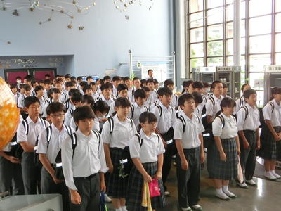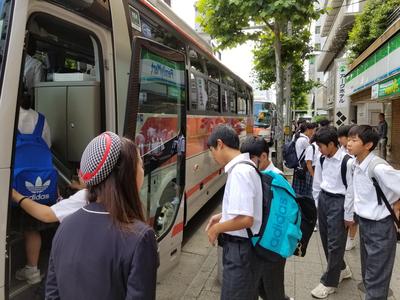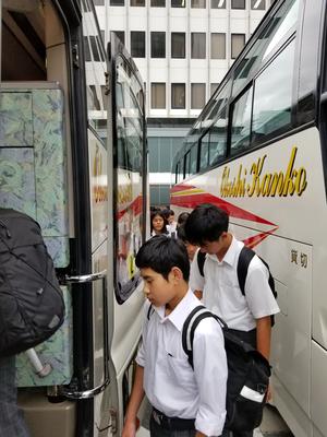 荷物を確認後、バスに乗車。これからクラス毎に見学へ。