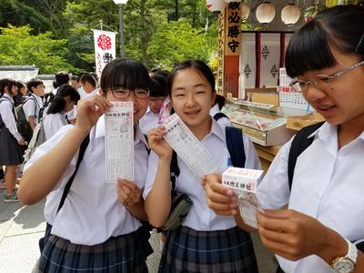 1組・3組揃って学業成就を祈願しました。2組の分も祈願しましたので安心してください。