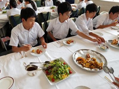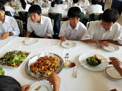 7時から朝食をいただきました。生徒たちは元気に朝食を食べていました。