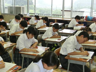 主人公が「受験を控えた中学生」とあって、生徒たちは真剣に見入っていました。
