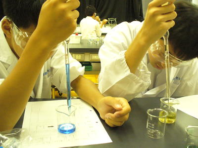 何度も練習しています。使っている器具は「こまごめピペット」。