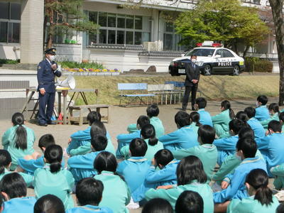 9日(木)、交通安全教室を行いました。真岡警察署長田交番の橋本署員から自転車運転に関する講話をいただきました。その後、自転車で学区内を1周し、交差点や一時停止個所の確認を行いました。