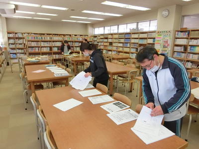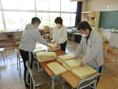 学校では先生方が各家庭に配付する課題や書類の準備を進めています。