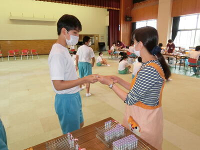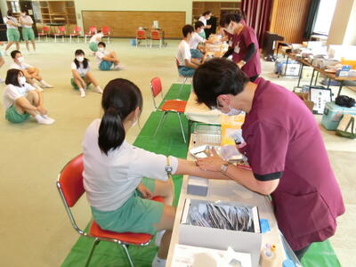 19日(金)、栃木県保健衛生事業団による「小児生活習慣病予防健診(2年生)」および「貧血検査(1・3年生)」を行いました。今年は新型コロナウイルス感染拡大防止のための休校措置に伴い延期されていた保健関係行事の一つです。