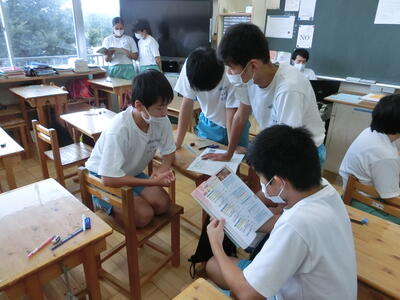 26日(水)、9月9日に予定している「ミニ・スポーツフェスティバル」に向けて係活動の打ち合わせを行いました。各種委員会毎に集まり、分担内容の確認を行ったり用具の準備を行ったりしました。また、学年毎に演技種目の確認も体育委員会や生徒会役員が中心となって行いました。(下の写真は1年生の説明会の様子です)