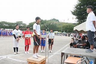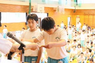 表彰伝達も行いました。郡市総体準優勝ソフトテニス部。(小松 拓弥君・渡邉 輝心君)