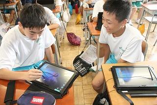 学校では、「タブレット」を使った授業を研究中です。まずは「タブレットに慣れよう」ということで、技術科の授業の様子をお届けします。