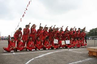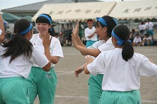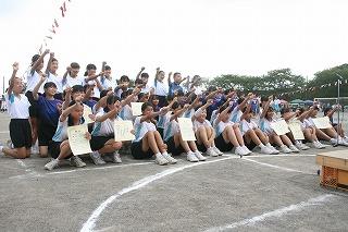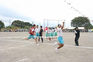 勝利のガッツポーズ!見応え十分の選抜リレー。(3年生)