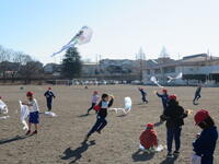 今日は、1年生の凧揚げと外国語活層の様子です。気持ちの良い天気のなか、自分で作った凧の凧揚げにチャレンジ。気持ちよさそうに走り回って、楽しんでいました。