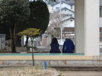 昼休みに校内を回ってみると、外で腰掛けながら友達と語らい合っている6年生の姿を見かけました。