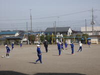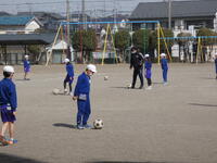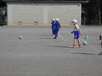 今日は、体育の様子です。春めいた日差しを受けながら、3年生と6年生が元気に、ボールを蹴っていました。