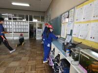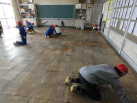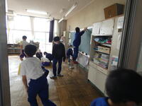 どの学年も、1年間お世話になった教室や廊下、階段、特別教室などみんなで、きれいにしました。隅々まできれいに雑巾がけをしたり、掲示物を取ったりと分担しながら誰もが進んで働く様子が見られました。床の墨汁のシミをみんなで一生懸命に落としていた教室もありました。床はピカピカになりました。とりわけ6年生は、6年間お世話になった感謝を込めて教室をはじめ、校内をきれいにしていました。この後は先生方で、さらにワックスがけでピカピカに仕上げます。気持ちよく新年度を迎えられそうです。