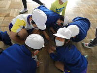 当日は、代表の参加となり、5年教室へのMeet配信となるため、少し臨場感を体験できるよう2階からの練習見学をしました。