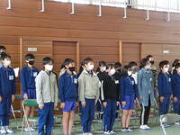 5年生が司会を行い、代表児童があいさつをしたり、リボンを贈呈したりしました。全校生で、温かい雰囲気で卒業生に感謝の気持ちを表すことができました。