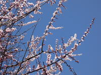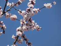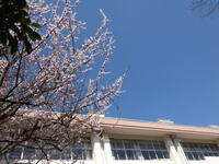 今日は、中庭に咲き誇るあんずの花と卒業生・在校生が一緒に卒業式の練習をしている様子です。