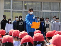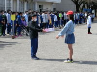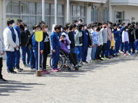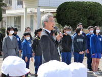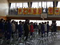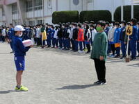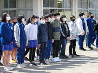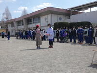 在校生全員が卒業式に参加できないため、今日、晴れた校庭において「お別れ式」を行いました。