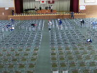 5年生は、明日の卒業式に向けて、5時間目と6時間目、体育館に整然といすを並べました。その他にも、6年生が通る場所の清掃を行いました。6年生のために一生懸命働く5年生の姿が見られました。