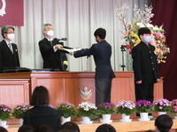 卒業生は、制服に身を包み、堂々とした立派な態度で、一人一人しっかりと校長先生から卒業証書をいただくことができました。