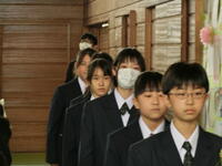今日は、卒業式予行の様子です。入場から退場まで、通し練習を行いました。5年生は在校生代表が参加しています。