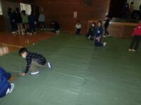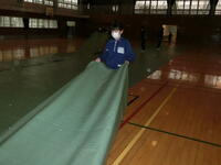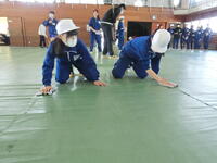 「もっと引っぱって。」「もっと右。」など声を掛け合いながら、協力してシート敷きを行っていました。