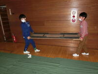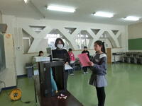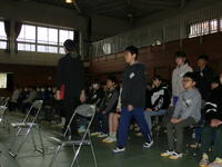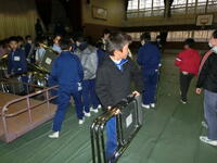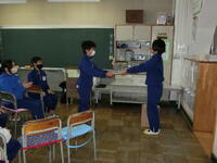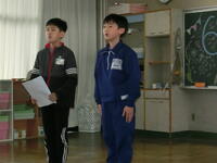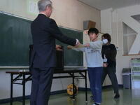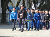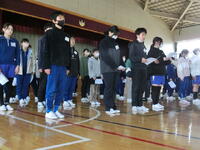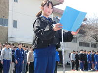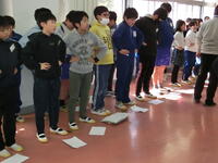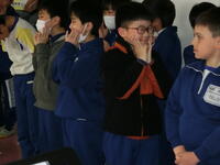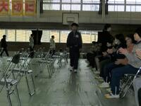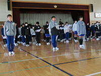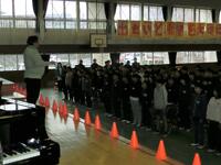お別れの言葉、式歌、校歌、国歌、入退場の練習を行いました。