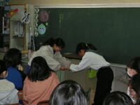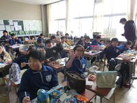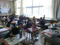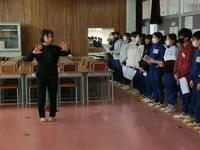 1年生の音楽の授業です。廊下まで元気のよい歌声が響いていました。