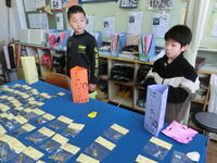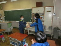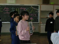 在校生からは、仲良し班のメンバーからのメッセージ入り色紙やあさがおの種などが送られました。