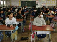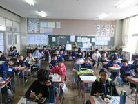 国歌、校歌斉唱では各教室から元気な歌声が学校中に響き渡っていました。