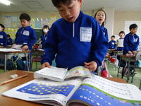 5年生が卒業式の式歌「旅立ちの日に」を練習していました。