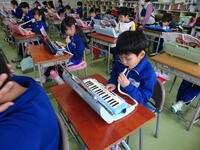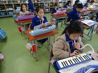 鍵盤ハーモニカで「きらきら星」を演奏しました。楽譜なしでも演奏できる子がたくさんいました。
