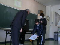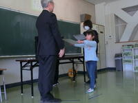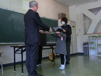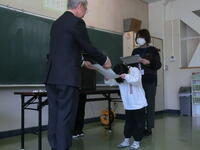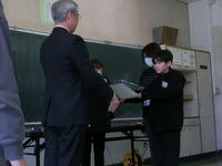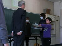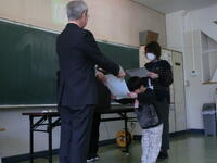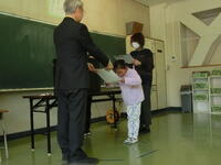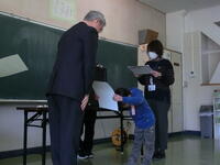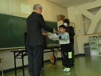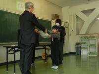 修了式が行われました。各学年の代表児童が修了証をもらいました。