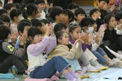 楽器を演奏する仕草をしたり、体を左右に動かしたり軽く踊ったりする姿が見られました。みんな楽しそう!
