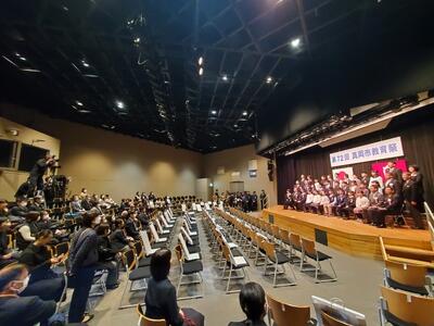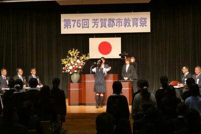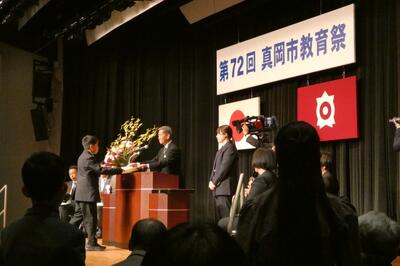 真岡いちごホールにおいて、午前に真岡市教育祭が、午後に芳賀郡市教育祭が開催されました。