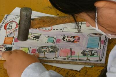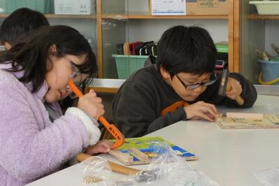 3年4組の図画工作科の「くぎうちトントン」におジャマしました。