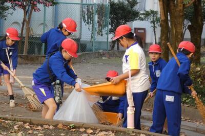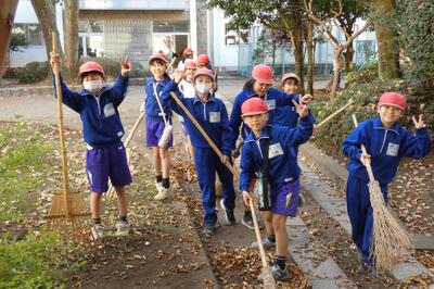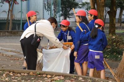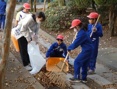3年4組の皆さんが落ち葉を掃いてくれました。