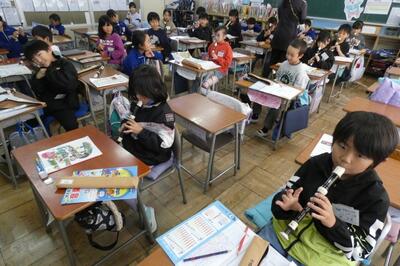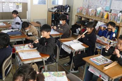 ソプラノリコーダーで「メリーさんのひつじ」を演奏しているところです。