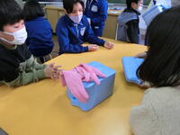 一つの辺に対して、垂直・平行になる辺を模型を使って見付けました。