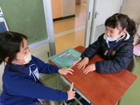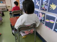 手を後ろにおいたり、机の上においたりしながら先生の話をしっかり聞く様子も見られました。すばらしいですね。