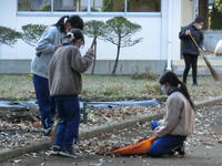 風が吹く肌寒い中でしたが、手を休めることなく一生懸命に働く姿がとても立派でした。
